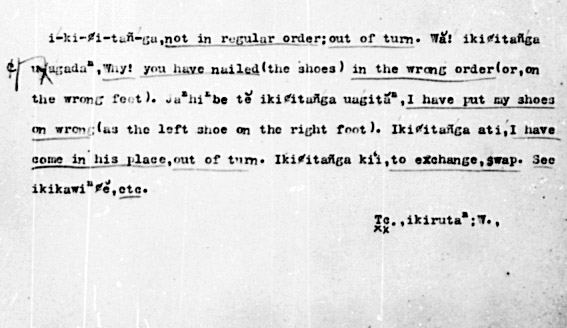 | í-ki-ȼí-taⁿ-táñ-ga | íkʰithítʰoⁿtʰóⁿga | refers to more than two, as ikic̸itañga does to two objects; not in regular order or succession; to and fro, one here and another there | 5/21/10 | 12/22/10, 5:33 PM | Jianguo Wang | http://omahalanguage.unl.edu/dictionary_images/ika/opd.02.069.10b.jpg |